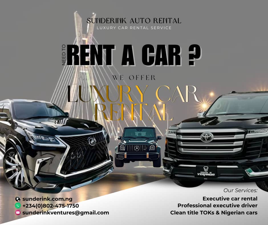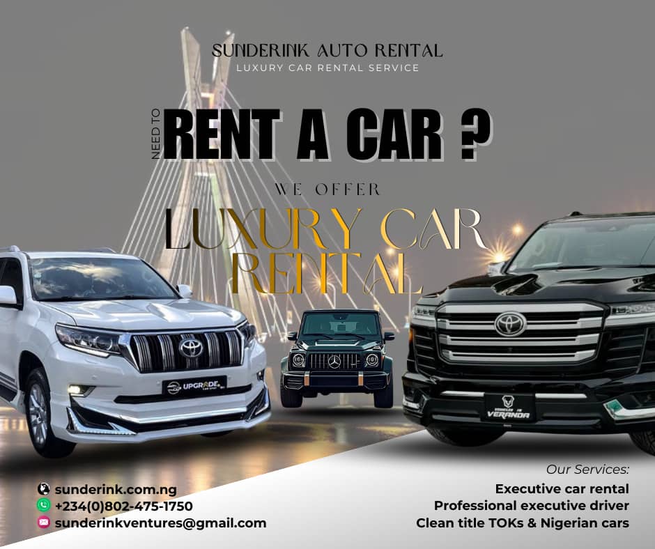 Sunderink Ventures Limited offers car rentals, car sales, repairs, logistics, OEM car parts, driver outsourcing, and business services in Lagos, Nigeria.